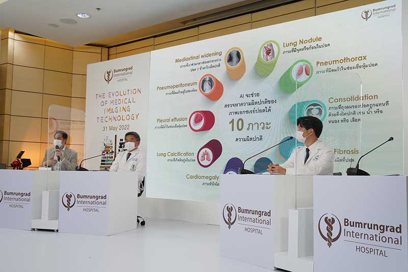 ด้าน นพ. อลงกรณ์ เกียรติดิลกรัฐ รองหัวหน้าแผนกรังสีวิทยา และแพทย์ชำนาญการด้านรังสีวิทยา โรงพยาบาลบำรุงราษฎร์ เปิดเผยว่า ล่าสุด บำรุงราษฎร์ได้มีการนำ Radiology AI ปัญญาประดิษฐ์ทางรังสีวิทยาเข้ามาใช้ในโรงพยาบาล เสมือนเป็นผู้ช่วยรังสีแพทย์ทั้งในส่วนของการคัดกรอง การวิเคราะห์ และการวินิจฉัย พร้อมระบุตำแหน่งภาวะความผิดปกติของปอด และมะเร็งเต้านมระยะแรกเริ่ม โดย Radiology AI ถือเป็น Deep Learning AI ซึ่งเป็นโมเดลการเรียนรู้ในเชิงลึก เป็นอัลกอรึทึมที่ใช้โครงข่ายใยประสาทเสมือน ด้วยการเลียนแบบการทำงานระบบประสาทของมนุษย์ที่มีเซลล์ประสาทเชื่อมต่อกัน ฉะนั้น Radiology AI จะสื่อสารโดยการประมวลผลที่ละเอียดลึกซึ้งกว่า Machine Learning รวมถึงสามารถประมวลผลต่อได้เอง ซึ่งเทคโนโลยีนี้ได้รับการรับรองจากองค์การอาหารและยาแห่งสหรัฐอเมริกาในปี 2564 ที่สำคัญ Radiology AI มีความล้ำทันสมัยในการวินิจฉัย มีความเสถียร แม่นยำ และรวดเร็ว ด้วยการใช้ Microsoft Azure แพลตฟอร์มคลาวด์คอมพิวติ้ง ซึ่งเป็นที่ยอมรับในระดับโลก