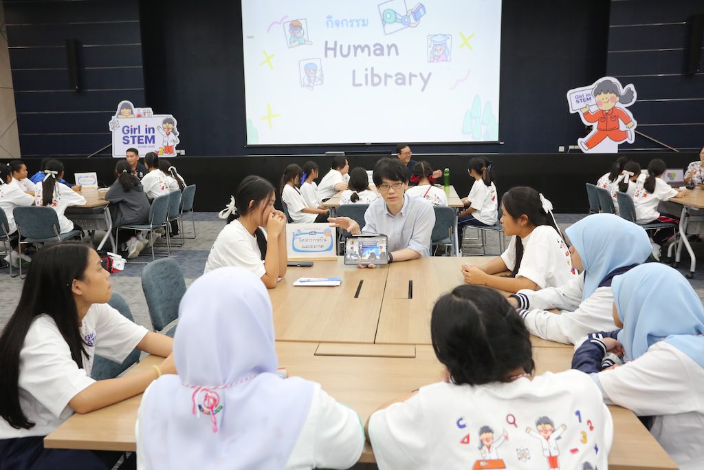 นอกจากเวทีเสวนาแล้ว ยังมีกิจกรรม “ห้องสมุดมนุษย์” (Human Library) ที่เปิดโอกาสให้นักเรียนได้พูดคุยอย่างใกล้ชิดกับพี่ต้นแบบใน 9 อาชีพ STEM ไม่ว่าจะเป็น โปรแกรมเมอร์ นักวิทยาศาสตร์ข้อมูล วิศวกรความมั่นคงปลอดภัยไซเบอร์ นักวิจัยนาโนเทคโนโลยี วิศวกรเสียง นักนิติวิทยาศาสตร์ นักวิทยาศาสตร์เภสัชวิทยาภูมิคุ้มกัน วิศวกรการบินและอวกาศ และนักวิทยาศาสตร์และเทคโนโลยีการอาหาร