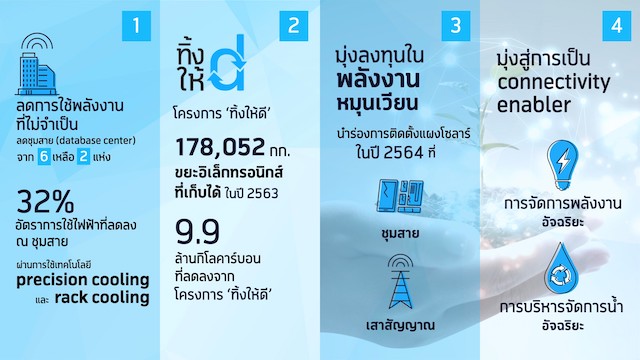 ทั้งนี้ ดีแทคได้ประกาศแผนกลยุทธ์ในการลดการปล่อยก๊าซเรือนกระจก ผ่านการดำเนินงานใน 4 ด้าน ดังนี้