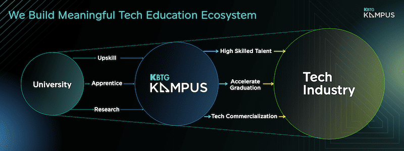 KBTG ต้องการยกระดับการสร้างความแข็งแกร่งให้กับระบบนิเวศเทคโนโลยีและการวิจัยของประเทศไทย โดยไม่ได้ทำคนเดียว แต่จะทำกับพันธมิตรที่ดีที่สุดของประเทศและของภูมิภาคนี้ ด้วยการยกระดับ KBTG Kampus ที่เป็นเครื่องมือของ KBTG ในการยกระดับความแข็งแกร่งของระบบนิเวศเทคโนโลยีและการวิจัย