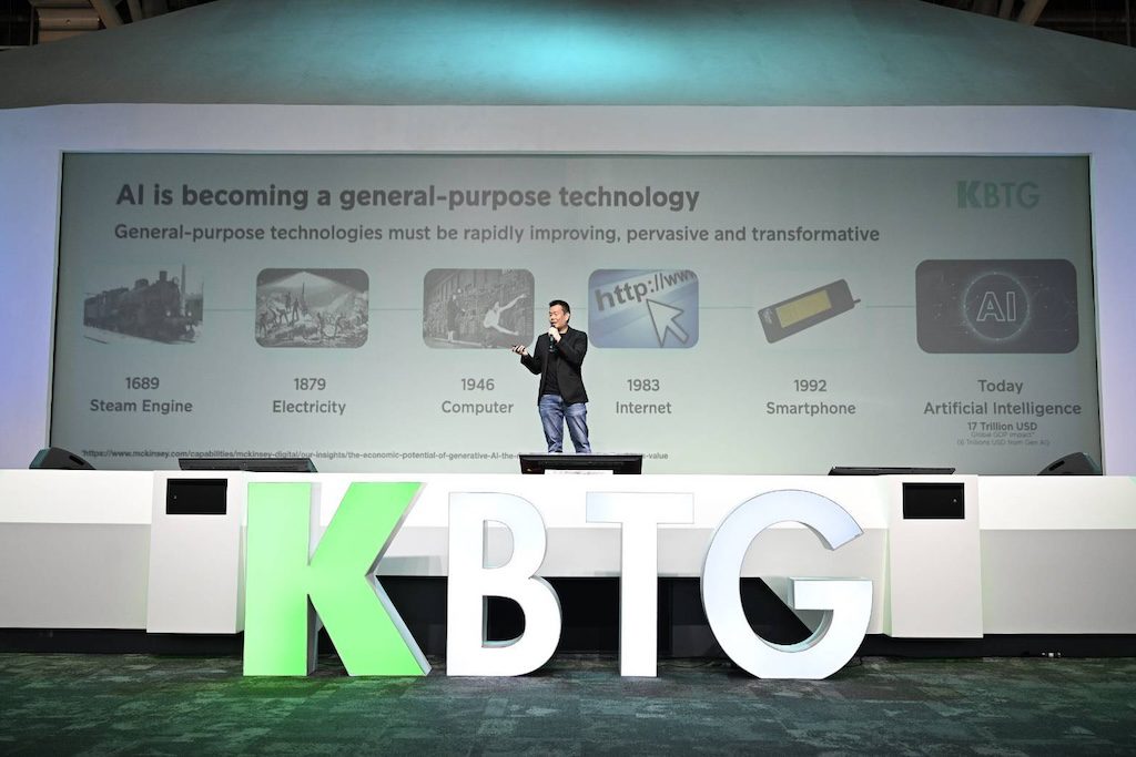 KBTG เชื่อว่าเทคโนโลยีปัญญาประดิษฐ์จะเป็น General-Purpose Technology หรือเทคโนโลยีที่เปลี่ยนโลก ที่จะสร้างผลกระทบต่อระบบเศรษฐกิจและสังคม ด้วยความพร้อมที่สั่งสมตลอดการทำทรานส์ฟอร์เมชันในช่วง 5 ปีทีผ่านมาทำให้ KBTG สร้างสิ่งที่เรียกว่า KBTG AI/ML Universe ที่มีทั้งงานงานวิจัยและพัฒนาที่กำลังทำทั้งทำเองและทำร่วมกับพันธมิตรชั้นนำของโลกของ MIT Media Labs ผลิตภัณฑ์ที่กำลังทดสอบทดลองใช้ในเครือธนาคารกสิกรไทยและเครือ KBTG ผลิตภัณฑ์ที่ออกสู่เชิงพาณิชย์ แล้วรวมถึงการสร้างกำลังคนด้านเทคโนโลยี AI ทั้งใน KBTG เองและในระบบนิเวศที่ทำร่วมกับสถานศึกษาทั้งประเทศ
