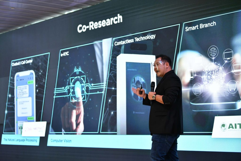 ที่ผ่านมามีการทำ Co-research กับหน่วยงานวิจัย อาทิ Natural language processing (NLP) เป็นเรื่องสำคัญ นำมาใช้เพิ่มประสิทธิภาพการทำงานมหาศาล รวมถึง Computer Vision ที่นำไปใช้ในเรื่อง eKYC หรือ Contactless Technology ที่มีการใช้งานจำนวนมาก รวมถึง Touchless Navigation และการทำ Smart Branch เพราะสาขาของธนาคารจะยังคงมีอยู่ต่อไป การทำ Retail Transformation ที่เปลี่ยน Touch Point ทั้งหมดของ Retail Banking ทั้งหมดนี่คือ เริ่มต้น แต่ยังจะต้องมีการใช้งาน (Used-case) อีกมหาศาล