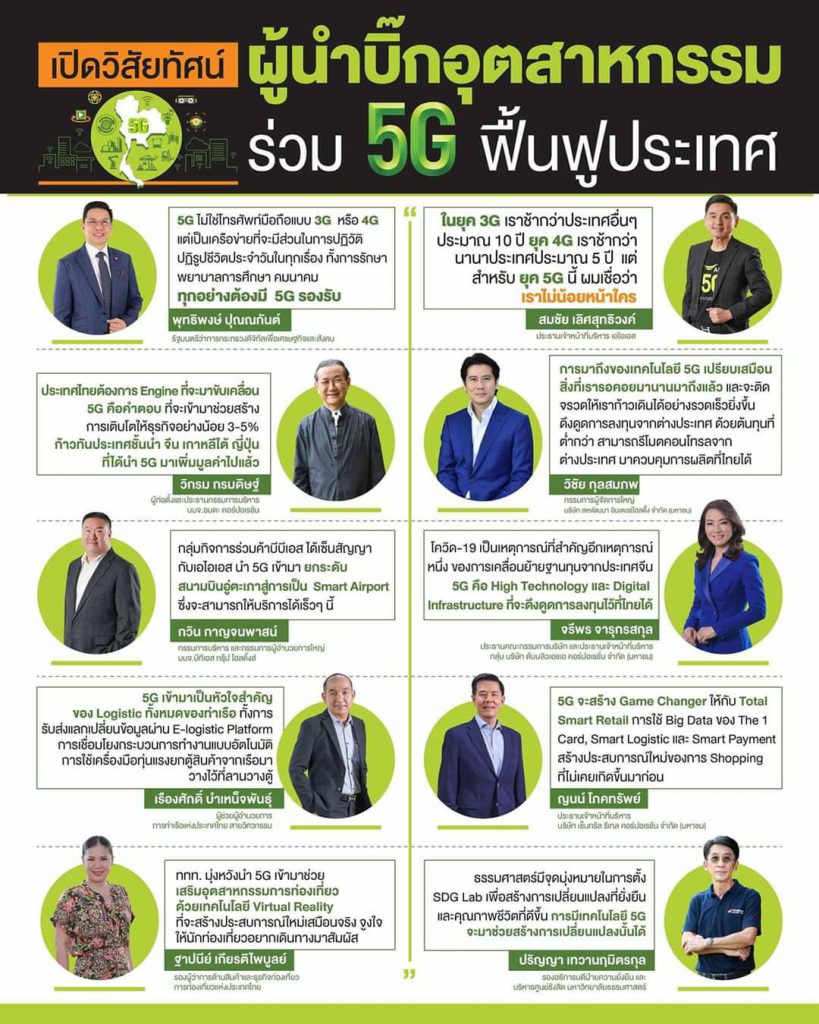 “การมาถึงของเทคโนโลยี 5G เปรียบเหมือนสิ่งที่เรารอคอยมานานมาถึงแล้ว และจะมาติดจรวดให้เราก้าวเดินได้อย่างรวดเร็วยิ่งขึ้น และยังช่วยดึงดูดการลงทุนจากต่างประเทศด้วยต้นทุนที่ต่ำลง อย่างเช่น โรงงานมีบริษัทแม่อยู่ที่ญี่ปุ่นหรือเกาหลี เขาสามารถรีโมตคอนโทรลมาควบคุมการผลิตที่ศรีราชาได้โดยไม่ต้องเดินทางมาประเทศไทย สิ่งเหล่านี้ไม่เพียงแต่ลดต้นทุน แต่ยังช่วยรีโลเคตบางโมดูลมาผลิตที่สายการผลิตในไทยได้ จากเดิมที่ไม่เคยคิดว่าจะมาผลิตที่ไทยได้ เกิดผลิตภัณฑ์ใหม่ในราคาต้นทุนที่ต่ำลง”