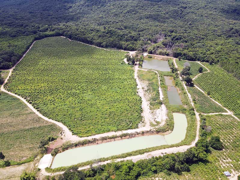 ลึกเข้าไปในพื้นที่ติดชายเขาแนวเขตอุทยานแห่งชาติเขาใหญ่ กนก นภัสสุริยธนธร เจ้าของพื้นที่กว่า 50 ไร่ผืนนี้ เล่าว่าในอดีตไม่สามารถใช้ประโยชน์ที่ดินในการทำเกษตรได้นอกจากการปลูกป่ายูคาลิปตัส เพราะในฤดูฝนน้ำก็ไหลหลากลงไปท่วมด้านล่างและไหลทิ้งไป พอถึงฤดูแล้งก็ไม่มีน้ำ