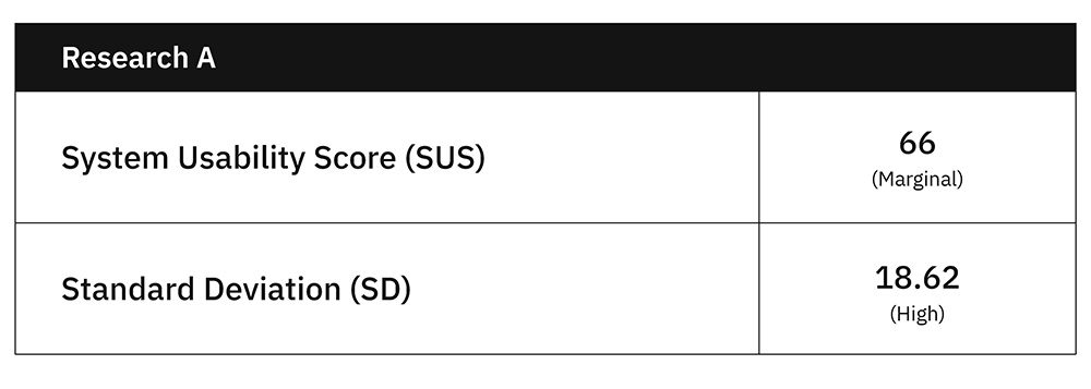 หลังจากได้ทำการวิจัยเสร็จสิ้น ผลลัพธ์ของ System Usability Scale แสดงถึงคะแนนที่อยู่ในเกณฑ์พอใช้ (66 คะแนน) เมื่อเทียบกับเกณฑ์มาตรฐานซึ่งอยู่ที่ระดับ 64 คะแนน หากวิเคราะห์โดยทั่วไปคะแนนดังกล่าวเพียงพอสำหรับการดำเนินการในการพัฒนาระบบต่อไป แต่อย่างไรก็ตามหากดูที่ค่าเบี่ยงเบนมาตรฐาน (Standard Deviation: SD) กลับแสดงถึงค่าความเบี่ยงเบนที่ค่อนไปในทางที่สูง (SD โดยประมาณ 18.62) ดังนี้งานวิจัยเลยได้ดำเนินต่อเพื่อหาความหมายภายใต้ค่าความเบี่ยงเบนมาตรฐานที่สูงผ่านการสัมภาษณ์ผู้ใช้งาน Prototype และได้ผลลัพธ์ของการสัมภาษณ์และการวิเคราห์ข้อมูลเชิงคุณภาพเป็นหัวข้อตามตัวอย่างดังนี้