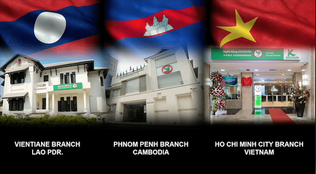 ซึ่งธนาคารกสิกรไทยได้ปักธงบุกตลาดนี้อย่างเป็นรูปธรรมเมื่อเดือนที่ผ่านมาด้วยการเปิดสาขาที่นครโฮจิมินห์ ของเวียดนาม หลังจากเข้าไปในตลาดนี้มานานกว่า 7 ปี ที่เลือกเปิดตัวธนาคารสาขาที่เวียดนามเพราะเวียดนามคือประเทศที่มีการเติบโตและจะเติบโตสูงที่สุดในอาเซียน ซึ่งอาเซียนคือภูมิภาคที่เติบโตสูงที่สุดในโลกท่ามกลางวิกฤติโควิด-19 ในอาเซียน ธนาคารกสิกรไทยยังมีสำนักงานสาขาที่สปป.ลาวและกัมพูชา และมีแผนจะขยายไปอินโดนีเซียหรือแม้กระทั่งเมียนมาหากสถานการณ์คลี่คลายลง