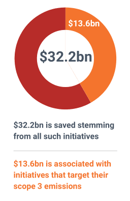 นอกจากนี้ ในบรรดากิจการที่เปิดเผยข้อมูลเกี่ยวกับสภาพภูมิอากาศกับ CDP มีกิจการจำนวน 56% ที่ระบุถึงความริเริ่มในการลดมลอากาศของกิจการ ซึ่งมียอดเงินรวมที่ประหยัดได้ราว 3.22 หมื่นล้านเหรียญ ขณะที่มีกิจการจำนวน 15% ที่ระบุเจาะจงถึงการลดมลอากาศในห่วงโซ่คุณค่า แต่ยอดเงินรวมที่ประหยัดได้กลับมีสูงถึง 1.36 หมื่นล้านเหรียญ