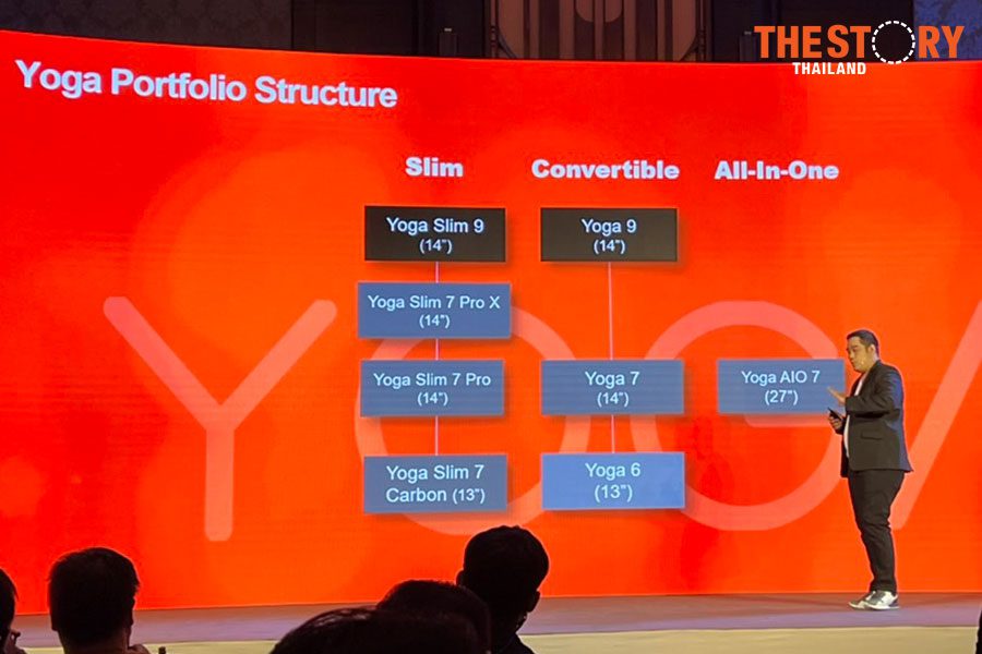 วรพจน์ ถาวรวรรณ, ผู้จัดการทั่วไป ประจำเมียนมาร์, ลาว, กัมพูชา และผู้จัดการฝ่ายผลิตภัณฑ์คอนซูมเมอร์ เลอโนโว ประจำไทย กล่าวว่า วันนี้เลอโนโวเปิดตัวผลิตภัณฑ์ Lenovo Yoga 2022 ออกสู่ตลาด 8 รุ่น โดยแบ่งเป็นแล็ปท๊อป 7 รุ่น และคอมพิวเตอร์ all-in-one 1 ทั้งหมดถูกออกแบบโดยคำนึงถึงไลฟ์สไตล์ของผู้บริโภคในปัจจุบันที่เปลี่ยนไปเป็นแบบไฮบริด นอกจากนี้เลอโนโวยังพร้อมส่งมอบเทคโนโลยีทีล้ำสมัย ภายใต้ดีไซน์ที่โดดเด่น มีเอกลักษณ์ ตอบโจทย์การใช้งานในทุก ๆ ด้าน ไม่ว่าจะเพื่อความบันเทิงส่วนตัว หรือการทำงาน