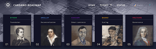 Cardano เป็นอีกเครือข่ายหนึ่งที่มีการวางแผนพัฒนาหรือโรดแมปไว้อย่างชัดเจน โดยแบ่งการพัฒนาออกเป็น 5 เฟสดังนี้