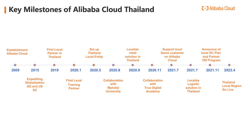อาลีบาบา คลาวด์ เริ่มเข้ามาในประเทศไทยตั้งแต่ปี 2562 ผ่านพันธมิตรธุรกิจในไทย ก่อนตั้งทีมงานของตัวเองในประเทศไทยในปี 2563 และเมื่อเดือนเมษายนที่ผ่านมา อาลีบาบา คลาวด์ ได้เปิดโครงสร้างพื้นฐานของอาลีบาบา คลาว์ในประเทศไทย อย่างเป็นทางการ เพื่อให้บริการดาต้าเซ็นเตอร์และคลาวด์ในประเทศไทย