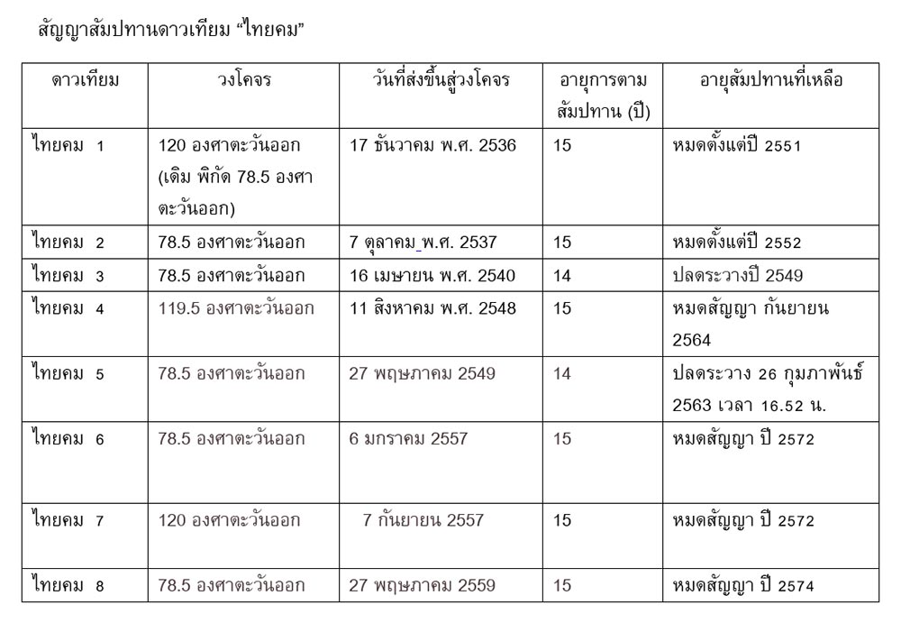 “ดาวเทียมไทยคม 4 อายุสัมปทานจะหมดลงในปี 2564 แต่อายุดาวเทียมทางวิศวกรรมจะหมดลงในปี 2566 ดังนั้น แม้จะหมดอายุสัมปทานแล้วแต่ตัวดาวเทียมยังคงใช้ได้อีก 2 ปี ในขณะที่ดาวเทียมไทยคม 5 อายุสัมปทานจะ หมดปลายปีนี้ แต่ตัวดาวเทียมเสียก่อนหมดอายุสัมปทาน ในการประมูลครั้งนี้ เราจะประมูลดาวเทียมดวงที่อายุสัมปทานหมดลง คือ ดาวเทียมไทยคม 5 ส่วนดาวเทียมไทยคม 4 วงโคจร 119.5 องศา จะเอาออกมาประมูลล่วงหน้า เนื่องจากต้องมีการสร้างดาวเทียมซึ่งต้องใช้เวลา แต่จะใช้ใบอนุญาตได้หลังปี 2566”