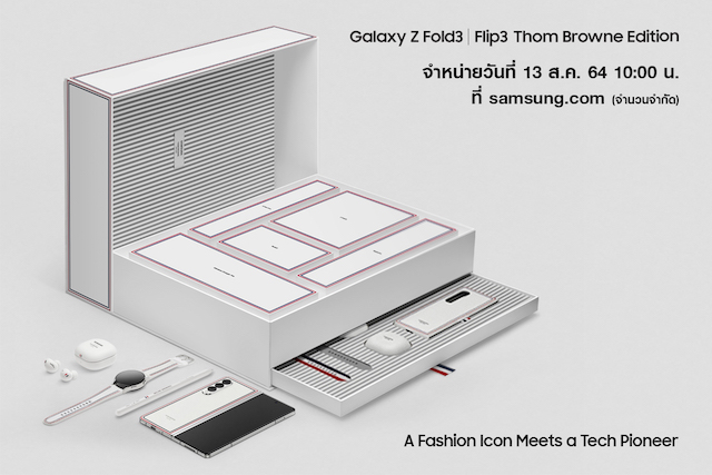 เปิดจำหน่าย Galaxy Z Fold3 | Flip3 Thom Browne Edition ในวันที่ 13 สิงหาคม2564 เป็นต้นไป ผ่านทาง Samsung.com เพื่อรับเครื่องในวันที่ 27 สิงหาคม 2564 มีจำนวนจำกัดเพียง 100 เซ็ตต่อรุ่นเท่านั้น