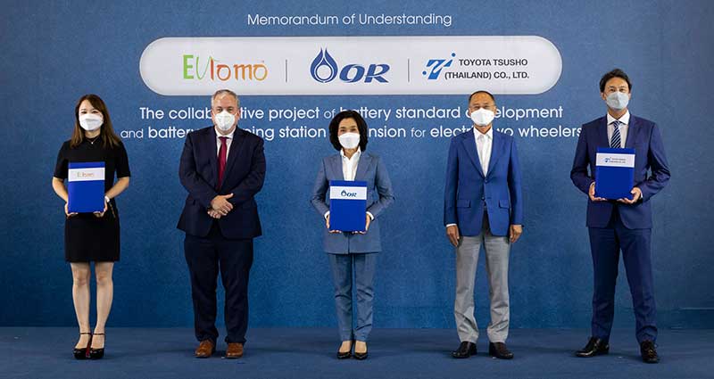 โออาร์ ร่วมกับ โตโยต้า ทูโช และ อีวีโลโม พัฒนามาตรฐานแบตเตอรี่และขยายเครือข่ายสถานีสลับแบตเตอรี่ (Battery Swapping Station) สำหรับรถจักรยานยนต์ไฟฟ้า มุ่งสู่การเป็นผู้ให้บริการแพลตฟอร์มของธุรกิจยานยนต์ไฟฟ้าเต็มรูปแบบ ยกระดับการให้บริการการเคลื่อนที่ หรือ Mobility as a Service (MaaS) ตามพันธกิจการสร้าง Seamless Mobility