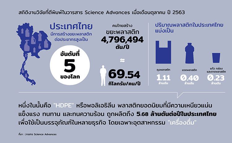 ด้าน ทศพล ศุภเมธีกูลวัฒน์ ประธานกรรมการบริหาร CirPlas ซึ่งเป็นผู้เชี่ยวชาญในการจัดการขยะพลาสติก กล่าวว่า ปัจจุบันประเทศไทยมีขยะพลาสติกมากถึง 2 ล้านตัน โดยขยะมากกว่า 75% ไม่ได้รับการจัดการที่ถูกต้องและเหมาะสม ซึ่งมักจะถูกนำไปฝังกลบ หรือเผาทำลาย ส่งผลให้เกิดการหลุดรอด และตกค้างในสิ่งแวดล้อม ส่วนพลาสติกที่ถูกนำกลับมารีไซเคิลสูงที่สุดคือพลาสติกประเภท PET อยู่ที่ 70% รองลงมาคือ PP 25% และบรรจุภัณฑ์ประเภท HDPE อยู่ที่ 20%