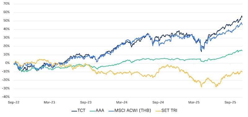 เปรียบเทียบผลตอบแทนพอร์ต TCT กับ MSCI ACWI ดัชนีตัวแทนมาตรฐานโลก ระยะเวลา 3 ปี