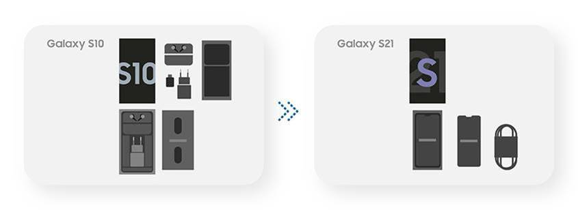 บรรจุภัณฑ์ของสมาร์ทโฟนแฟลกชิปรุ่นล่าสุดอย่าง Galaxy S21 Series 5G ถือเป็นบรรจุภัณฑ์ที่เป็นมิตรต่อสิ่งแวดล้อมมากที่สุดเท่าที่เคยมีมาในสมาร์ทโฟนตระกูล Galaxy S ทั้งหมด ทุกกล่องถูกผลิตขึ้นจากกระดาษลูกฟูกแทนกระดาษแข็งเพื่อง่ายต่อการรีไซเคิล ในขณะเดียวกัน ซัมซุงยังได้นำอุปกรณ์เสริมบางชนิด ได้แก่ ที่ชาร์จแบตเตอรี่และหูฟังในกล่องออกเพื่อลดปริมาณของบรรจุภัณฑ์ พร้อมส่งเสริมแนวคิดการใช้ซ้ำ (reuse) และการรีไซเคิลในหมู่ผู้ใช้กาแลคซี่อีกด้วย