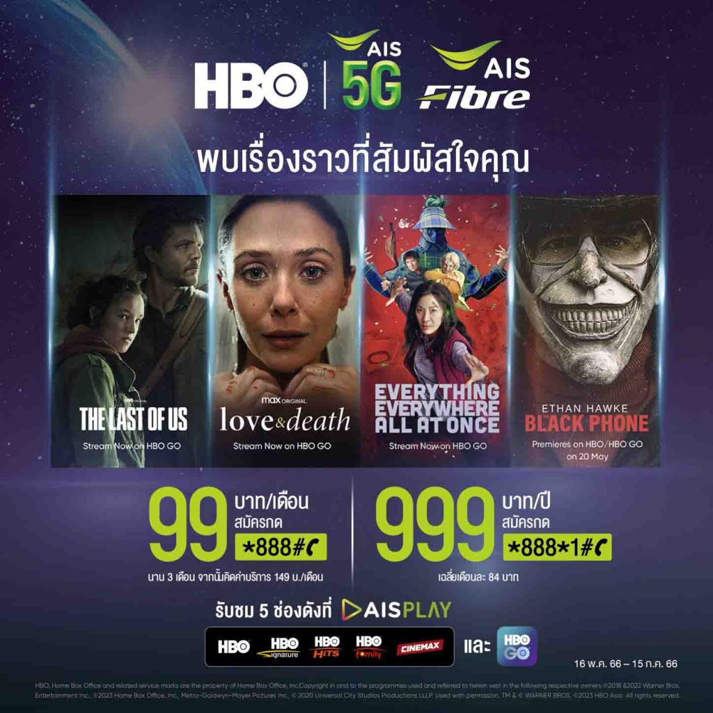 AIS ชวนลูกค้ารับชมซีรีส์ และภาพยนตร์ชั้นนำจากทั่วโลก บนแพลตฟอร์ม HBO GO และ 5 ช่องพรีเมียม ผ่าน AIS PLAY พร้อมแพ็กเกจสำหรับลูกค้า AIS ทั้งมือถือและเน็ตบ้าน 99 บาท/เดือน และ 999 บาท/ปี