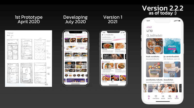 เริ่มคิดต้นแบบเมษายน 2020 เริ่มพัฒนากรกฎาคม 2020 ออกเวอร์ชันแรก 2021 จนปัจจุบันเวอร์ชัน 2.2.2 ที่มียอดผู้ใช้ที่ลงทะเบียนในระบบ 3 ล้านคนเมื่อเดือนมิถุนายนที่ผ่านมา และมีคนขับมากกว่า 30,000 คน มีร้านค้าอยู่บนแพลตฟอร์ม 280,000 ร้าน เกิดรายการสั่งอาหารมากถึง 4.8 ล้านครั้งต่อเดือน