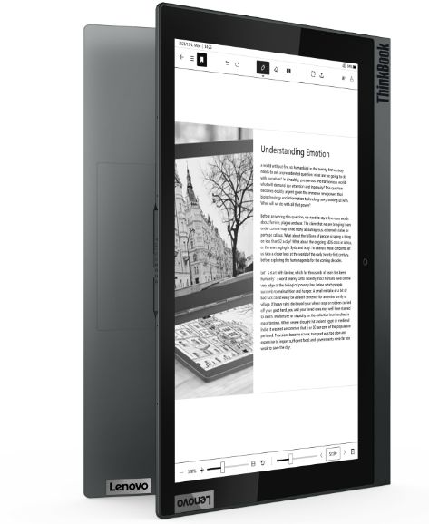 - จอแสดงผล e-Ink มาพร้อมอัตรา screen-to-body (STB) เพิ่มขึ้นจาก 48% เป็น 68% และมีพื้นที่ใช้งานที่ใหญ่ขึ้นเป็น 12 นิ้ว ขณะที่ความละเอียดของจอแสดงแบบ top cover ก็เพิ่มขึ้นเพื่อให้สอดคล้องกับความละเอียด 2560×1600 ของจอแสดงผลหลัก