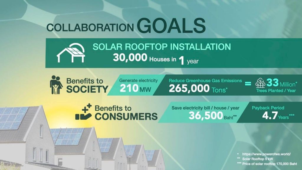 พันธมิตรรายใหญ่สองรายอย่าง บริษัท หัวเว่ย เทคโนโลยี่ (ประเทศไทย) จำกัด และ ธนาคารกสิกรไทย จึงจับมือกันนำเสนอเทคโนโลยีโซลูชันที่มาพร้อมโปรโมชันสินเชื่อเอื้อให้คนไทยสามารถร่วมเป็นส่วนหนึ่งของการลดการปล่อยก๊าซเรือนกระจกได้ง่าย ๆ ในชีวิตประจำวันด้วยการหันมาใช้พลังงานแสงอาทิตย์ ผ่านการติดตั้งระบบไฟฟ้าพลังงานแสงอาทิตย์ด้วยบริการทางเทคโนโลยีและการสนับสนุนทางการเงินจากพันธมิตรสองรายนี้