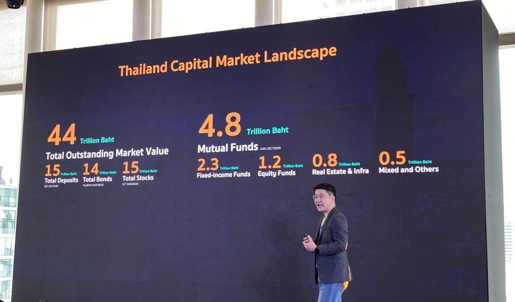 “ผู้ลงทุนสมัยก่อนอายุ 40-50 ปี ซื้อกองทุน คือ เดินไปที่สาขาธนาคาร เปิดบัญชี ซื้อกองของธนาคารนั้น กองทุนส่วนใหญ่จะคล้ายการฝากออมทัพย์ จะเป็นกองทุนตลาดเงิน บางคนชินกับการฝากประจำก็จะซื้อกองทุนพันธบัตรที่เป็น Fixed Term แต่ด้วยความสำเร็จของ Apple, Google, Facebook, Tesla และ Netflix คนมีแนวโน้มที่จะลงทุนในหุ้นมากขึ้นผ่านกองทุนรวม และอายุของนักลงทุนจะน้อยลง ส่วนใหญ่ประมาณ 60% ของฐานลูกค้าจะอายุต่ำกว่า 35 ปี และนิยมลงทุนผ่านมือถือ (Digital Channel) ไม่เดินไปที่ธนาคาร เราเชื่อว่าสัดส่วนของการลงทุนด้วยตัวเองจะเพิ่มมากขึ้นเรื่อย ๆ และการลงทุนผ่านโมบายแพลตฟอร์มจะเพิ่มขึ้นอย่างต่อเนื่องเช่นกัน”