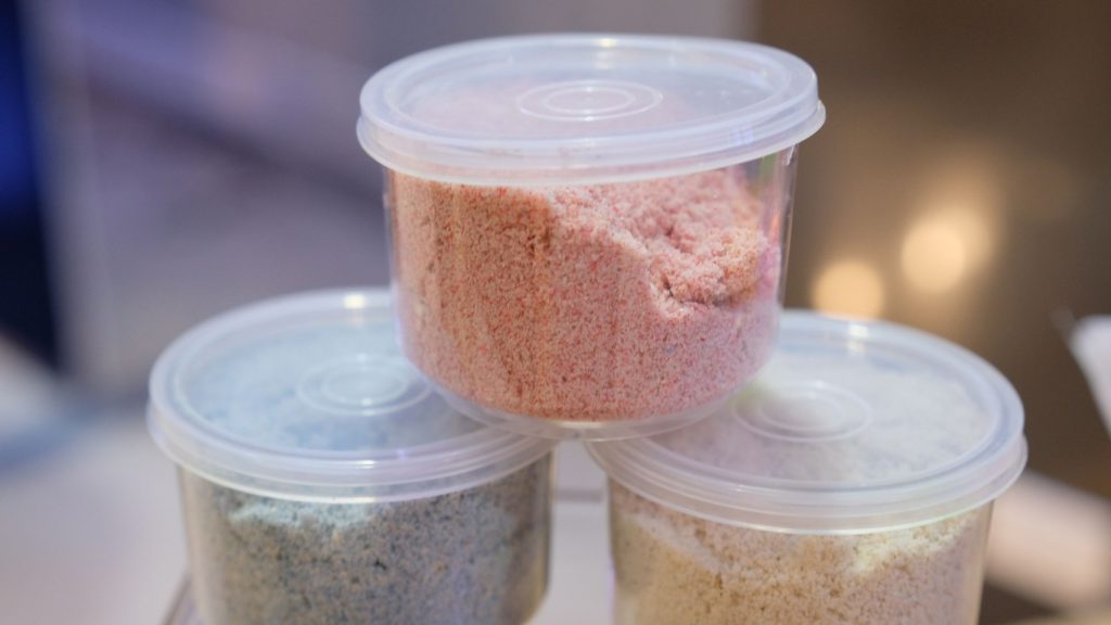 ผลิตภัณฑ์ชิ้นสุดท้าย คือ Para Sand ผลิตภัณฑ์ยางพาราที่มีลักษณะเป็นผงเหมือนทรายแต่มีความหนืดไม่แตกตัว ลักษณะคล้ายสไลม์แบบผง
