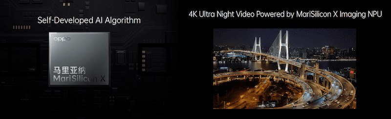 ขับเคลื่อนโดย MariSilicon X Imaging NPU ที่ออปโป้ออกแบบขึ้นเองเป็นครั้งแรก โดดเด่นด้วย 4K Ultra Night Video ให้ถ่ายวิดีโอคุณภาพสูงในที่แสงน้อยที่ดีที่สุดแบบที่ไม่เคยมีมาก่อนจากออปโป้ และการร่วมงานกับแบรนด์กล้องชื่อดังระดับโลก Hasselblad ที่ร่วมพัฒนากล้องให้ได้ภาพและวิดีโอตามแนวสีสวยสมจริงเป็นธรรมชาติเหมือนตาเห็นอย่างสมบูรณ์แบบ