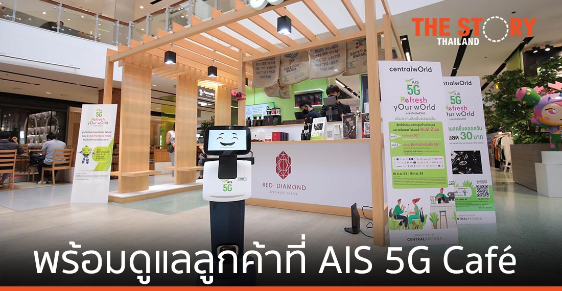 ซึ่งพัฒนาโดยทีมวิจัย AIS Robotic Lab มาทำหน้าที่ จัดการคิว เสิร์ฟเครื่องดื่ม และสอบถามความพึงพอใจของลูกค้าที่ร้าน AIS 5G Café ป๊อปอัพคาเฟ่สุดล้ำของคนรักกาแฟ ที่มีร้านดังหมุนเวียนมาเติมความสดชื่น เพื่อยกระดับการให้บริการที่ทันสมัย ลดเลี่ยงการสัมผัส เสริมความปลอดภัยและสุขอนามัย ตามมาตรการ Social Distancing ตอบสนองไลฟ์สไตล์การช้อปปิ้งวิถีใหม่ พร้อมพาคนไทยก้าวสู่โลก 5G ที่เหนือขีดจำกัดไปอีกขั้น