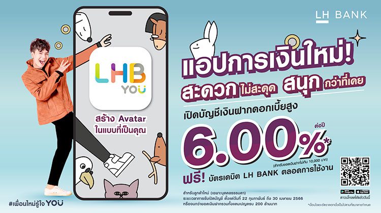 ธนาคารแลนด์ แอนด์ เฮ้าส์ จำกัด (มหาชน) หรือ LH Bank เปิดตัวแอปพลิเคชัน LHB You โดดเด่นด้วย Avatar Profile มอบประสบการณ์ทางการเงินที่ใช้งานง่าย สะดวกและรวดเร็ว รุกขยายฐานกลุ่มลูกค้าเจเนอเรชันใหม่ พร้อมออกเงินฝากออมทรัพย์ดิจิทัล “บียู แม็กซ์” ชูดอกเบี้ยสูงสุด 6.00% ต่อปี รับฟรี! บัตรเดบิต LH Bank ฟรีค่าธรรมเนียมตลอดการใช้งาน