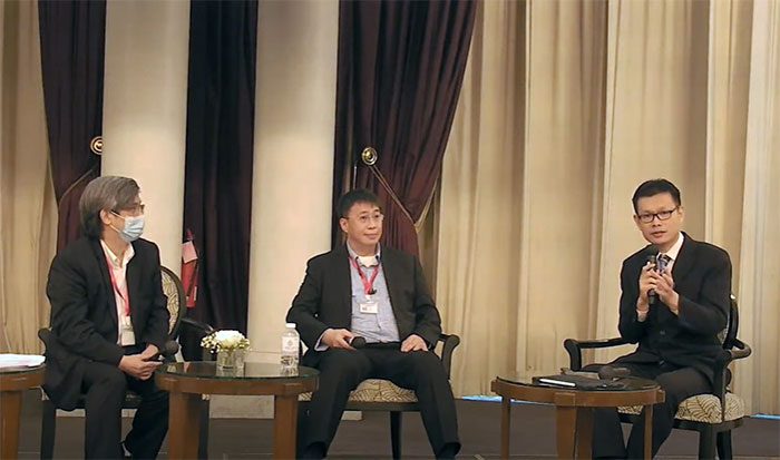 สาธิต (คนที่ 3 จากซ้าย) นำบทความจาก Gartner ที่มีการวิเคราะห์เกี่ยวกับโลกอนาคตของเครือข่ายออนไลน์ (network) มาแบ่งปัน โดยในปัจจุบันระบบเครือข่าย (network) ได้มีการออกแบบมาเพื่อแก้ปัญหาเฉพาะจุด (point solution) ซึ่งการแข่งขันในตลาดนี้จะมุ่งเน้นไปที่ประสิทธิภาพ (performance) และ คุณลักษณะเด่น (features) เช่น ในสถานการณ์การแพร่ระบาดของไวรัส โควิด-19 ที่มีข้อจำกัดในการทำงานร่วมกัน ทุกองค์กรมีนโยบายให้บุคคลากรสามารถทำงานที่บ้านได้ (Work from home) โดยการสื่อสารหลักจะผ่านตัวกลางของระบบเครือข่าย (Network) หากต้องการป้องกันการหลุดรั่วของข้อมูลในองค์กร องค์กรจำเป็นต้องติดตั้ง mobile VPN/ SDP เพื่อสร้างความมั่นคงทางเครือข่าย (network security) เป็นต้น และในอนาคตหากเกิดสถานการณ์เช่นนี้อีก องค์กรอาจจำเป็นต้องวางแผนและสร้างความมั่นคงทางเครือข่ายเพื่อแก้ปัญหาในจุดอื่นอีกต่อไป ซึ่งก่อให้เกิดความยุ่งยากในด้านเวลาและการจัดการ
