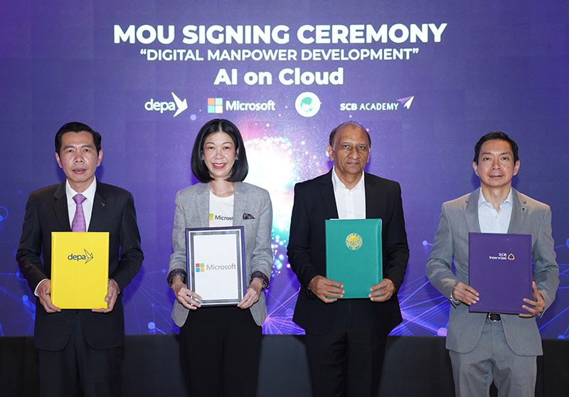 ไทยพาณิชย์, สำนักงานส่งเสริมเศรษฐกิจดิจิทัล (depa), ไมโครซอฟท์ (ประเทศไทย) และสถาบันเทคโนโลยีแห่งเอเชีย (AIT) ผนึกกำลัง เปิดตัวโครงการส่งเสริมทักษะด้านปัญญาประดิษฐ์ สำหรับบุคลากรและกำลังคนเพื่อเพิ่มโอกาสในการได้รับการจ้างงาน (Artificial Intelligence for Increasing Job Opportunity) เร่งสร้างคน AI เข้าภาคอุตสาหกรรม สนับสนุน New S-Curve ให้เศรษฐกิจไทย