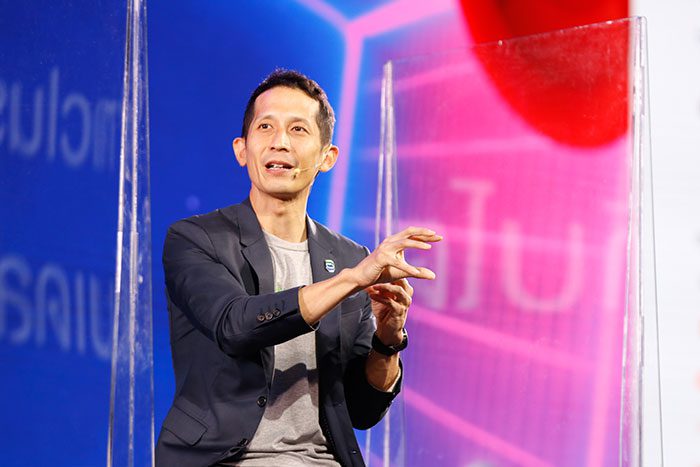 ปิดท้ายที่เวทีเสวนาในหัวข้อ “Inclusive Finance โมเดลการเงินแห่งอนาคต เพื่อการเติบโตร่วมกัน” ผู้ร่วมเสวนา ประกอบด้วย วิทัย รัตนากร ผู้อำนวยการธนาคารออมสิน, ธนา โพธิกําจร ประธานเจ้าหน้าที่บริหาร บริษัท กสิกร ไลน์ จำกัด และ ดร. สันติธาร เสถียรไทย ประธานทีมเศรษฐกิจ (Group Chief Economist) และกรรมการผู้จัดการ ซีกรุ๊ป