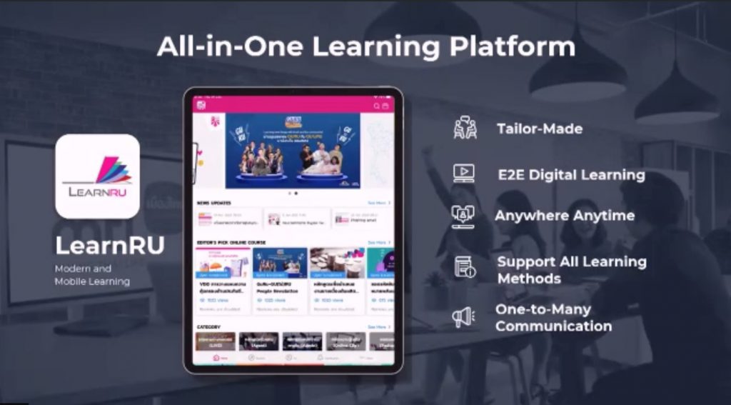 ทั้งนี้ บริษัทฯ เปิดตัวแพลตฟอร์มการเรียนรู้ ภายใต้ชื่อ “LearnRU” (เลิร์นรู้) ที่จะสร้างประสบการณ์การเรียนรู้ที่ทันสมัย รวดเร็; และเข้าได้จากทุกที่ ตอบโจทย์การเรียนรู้ในแบบออนไลน์ ทั้งแบบออนไลน์สด (Live Streaming) หรือการสัมมนาแบบเสมือนจริง (Virtual Workshop) สามารถถาม-ตอบ แลกเปลี่ยนความรู้ได้อย่างเต็มที่ รวมถึงสามารถเข้าถึงคลังความรู้ที่หลากหลายทั้งแบบ Micro Learning และแบบ Online Content ได้แก่ VDO สื่อ Infographic E-book หรือ Podcast