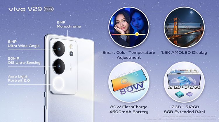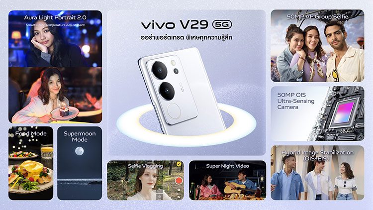 vivo เปิดตัว vivo V29 5G ภายใต้แนวคิด “ออร่าพอร์ตเทรต พิเศษทุกความรู้สึก” ที่มาพร้อมเทคโนโลยี Aura Light Portrait System ระดับเรือธง ด้วยฟีเจอร์ถ่ายภาพแสงออร่าพอร์เทรต Aura Light Portrait 2.0 ที่อัปเกรดใหม่ พร้อมฟีเจอร์ปรับสีภาพถ่ายอัจฉริยะ Smart Color Temperature Adjustment