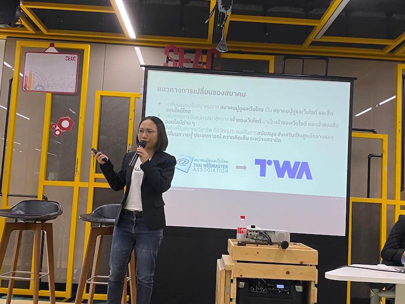 นอกจากการแถลงทิศทางใหม่ของสมาคมผู้ดูแลเว็บไทยแล้ว ยังมีงานเสวนาในหัวข้อ “The Future of Website and Online Publisher” ที่พูดคุยแลกเปลี่ยนประสบการณ์ มุมมอง ในการทำเว็บไซต์และสื่อออนไลน์ในช่วงที่ผ่านมาและแนวโน้มการเคลื่อนตัวในอนาคต
