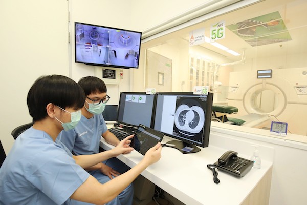 เรื่อง AI, 5G ไม่ใช่เรื่องใหม่ เอไอเอสมาตั้งแต่ระลอกแรก ที่ ราชวิทยาลัยจุฬาภรณ์ และโรงพยาบาลวชิระ ในระลอกนี้ สถานการณ์โควิดกระจายใยวงกว้างมากขึ้น เอไอเอสจึงได้ประสานงานกับโรงพยาบาลในภูมิภาคที่มีเครื่อง CT Scan เพื่อใช้ศักยภาพโครงข่าย 5G ของเอไอเอส เพื่อนำข้อมมูลจาก CT Scan ขึ้นมาที่คลาวด์ โดยผ่าน Gateway ที่เอไอเอสติดตั้งให้ ที่ผ่านมามีการเปิด (บริการนี้) ให้กับอีก 3 คือ โรงพยาบาลที่เพชรบูรณ์ ที่ร้อยเอ็ด และที่น่าน จะเห็นว่าเอไอเอสได้นำ 5G เข้ามาช่วยขยายบริการสาธารณสุขในพื้นที่ห่างไกล เพื่อช่วยตรวจโควิดได้รวเร็วและมีประสิทธิภาพ ซึ่งการตรวจ Swab Test หากใช้ CT Scan และ AI จะรู้ได้ภายใน 30 วินาที และได้ผลตรวจประมาณ 97% ดังนั้น น่าจะเป็นเครื่องมือที่จะช่วยสนับสนุนการทำงานของคุณหมอและการตรวจหาผู้ติดเชื้อโควิดในเชิงรุกได้อย่างดี
