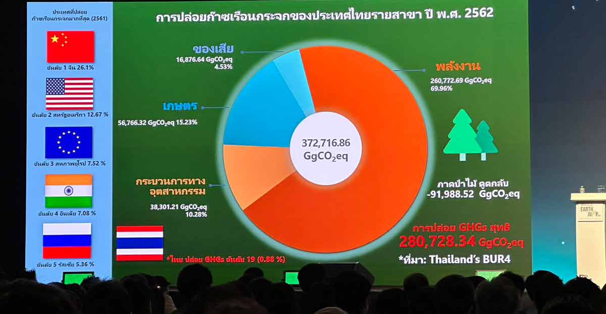 “ประเทศไทยมีความเสี่ยงเป็นอันดับที่ 9 ของโลกในการประสบภัยพิบัติ แต่ในทางกลับกัน อัตราการปล่อยก๊าซเรือนกระจกของประเทศไทยอยู่ที่ 0.8% อันดับที่ 19 ของโลก อันดับหนึ่งได้แก่ จีน สอง อเมริกา สาม สหภาพยุโรป มันไม่ยุติธรรมเลย เราปล่อยก๊าซอันดับที่ 19 แต่โดนผลกระทบเป็น 10 ประเทศแรกในโลกใบนี้ ก่อความเสียหายทางเศรษฐกิจ สังคม กลุ่มเปราะบาง กลุ่มเกษตรกร โดนผลกระทบถ้วนหน้า” วราวุธกล่าว