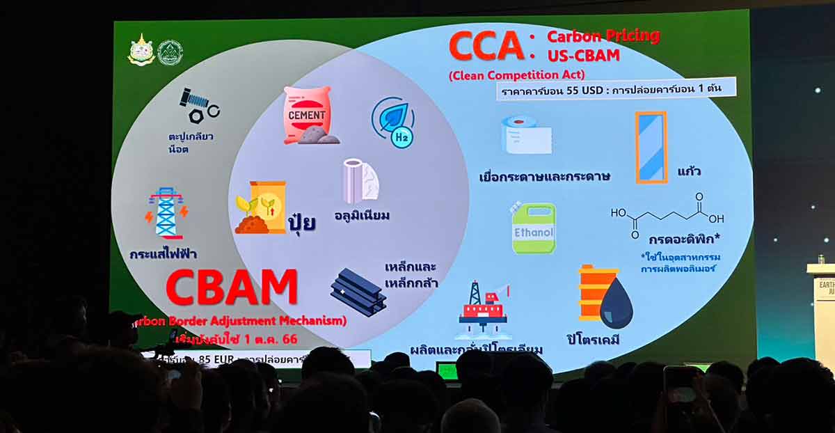 ปัญหาการเปลี่ยนแปลงสภาพภูมิอากาศ ยังก่อให้เกิดผลกระทบในรูปแบบของมาตรการทางการค้าและกำแพงภาษี โดยสหภาพยุโรปได้ออกมาตรการ CBAM (Carbon Border Adjustment Mechanism) ครอบคลุมสินค้า 5 ตัว เหล็กและเหล็กกล้า อลูมิเนียม ปุ๋ย กระแสไฟฟ้า และปูนซีเมนต์ ในต้นปี 2565 มีการขยายสินค้าเป้าหมายเพิ่ม ซึ่งอนาคตอันใกล้อาจจะครอบคลุมไปถึงภาคการเกษตร ในขณะที่สหรัฐอเมริกา ก็มีมาตรการ CCA – Clean Competition Act มาตรการปรับราคาคาร์บอนก่อนข้ามพรมแดนสำหรับสินค้านำเข้า โดยกลุ่มอุตสาหกรรมเป้าหมาย ได้แก่ ผลิตและกลั่นปิโตรเลียม ปิโตรเคมี ปุ๋ย ไฮโดรเจน กรดอะดิพิก ซีเมนต์ เหล็กและเหล็กกล้า อะลูมิเนียม กระจก เยื่อกระดาษและกระดาษ และเอทานอล