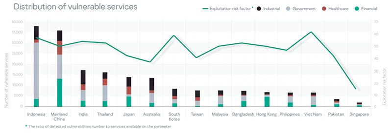 สิงคโปร์มีจำนวนช่องโหว่น้อยและมีอัตราส่วนระหว่างจำนวนบริการและผลรวมของช่องโหว่ที่ต่ำมาก ขณะที่เวียดนาม อินโดนีเซีย ไทย และมาเลเซียมีอัตราส่วนสูงสุดในกลุ่มประเทศในเอเชียตะวันออกเฉียงใต้