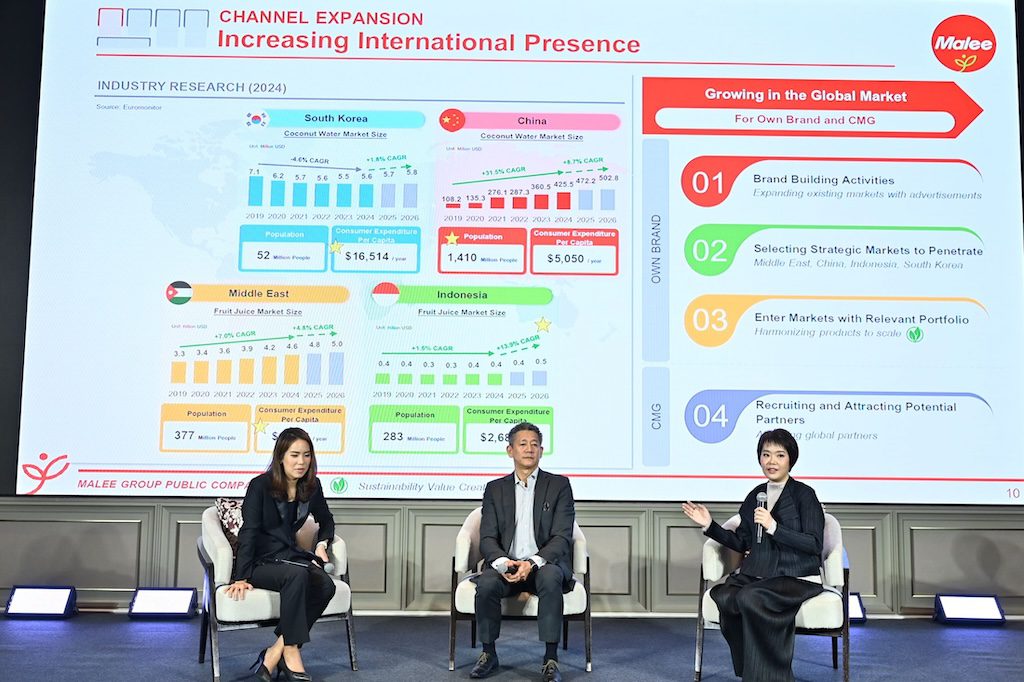 เพื่อบรรลุเป้าหมายนี้ มาลีจะใช้ ‘MAS’ (Malinee Applied Sciences) ศูนย์นวัตกรรมและไบโอเทคของตนเอง เป็น ‘New S-Curve’ หรือแหล่งรายได้ใหม่ และผลักดันการเติบโตผ่านการบุกตลาดเครื่องดื่มเชิงฟังก์ชัน (Functional Drink) อย่างเต็มรูปแบบ ทั้งหมดนี้จะขับเคลื่อนการเติบโตใน 4 ตลาดหลัก ได้แก่ จีน, เกาหลี, ตะวันออกกลาง และอินโดนีเซีย โดยตั้งเป้าหมายการเติบโตของรายได้รวมเฉลี่ยปีละ 10-15% ตลอดแผน 3 ปีนี้
