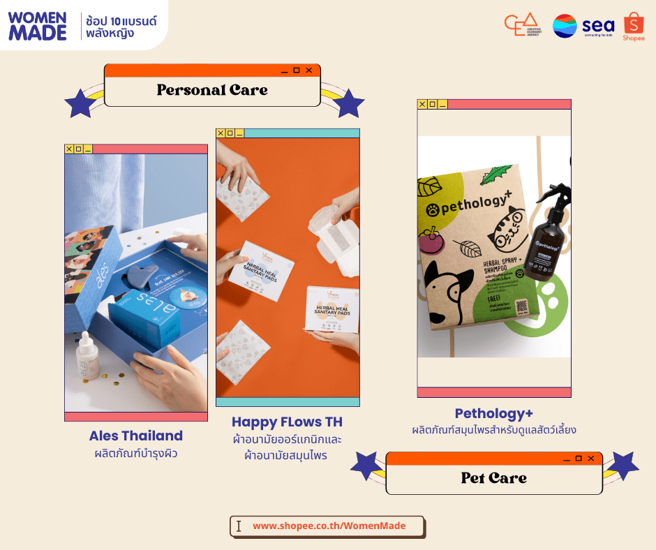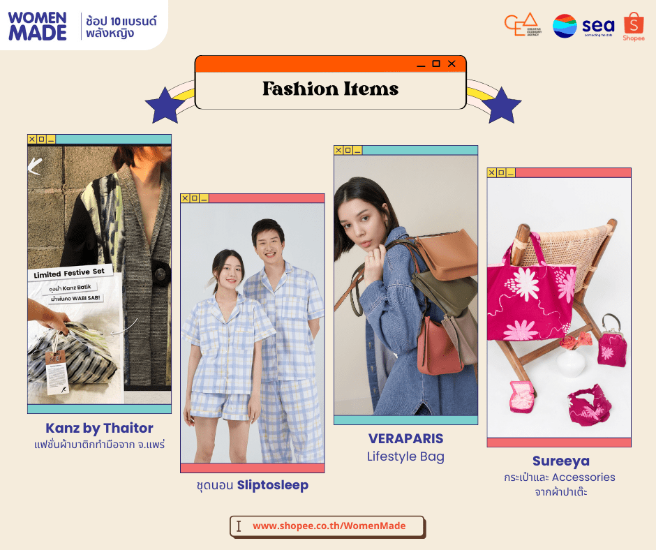 Sea (ประเทศไทย) และช้อปปี้ (Shopee) ซึ่งเป็นธุรกิจอีคอมเมิร์ซภายในเครือ ร่วมกับ สำนักงานส่งเสริมเศรษฐกิจสร้างสรรค์ (CEA) เปิดตัวแคมเปญ ‘Women Made ช้อป 10 แบรนด์พลังหญิง’ ชวนช้อปสินค้าคอลเลคชั่นพิเศษช่วงปีใหม่บนช้อปปี้ พร้อมมอบโปรโมชั่นส่วนลดสุดปัง 15% ตั้งแต่วันที่ 1 มกราคม – 15 กุมภาพันธ์ 2566 เติมความสุขช่วงปีใหม่ให้นักช้อป พร้อมสนับสนุนผู้ประกอบการหญิงชาวไทยให้เติบโตอย่างเต็มศักยภาพ