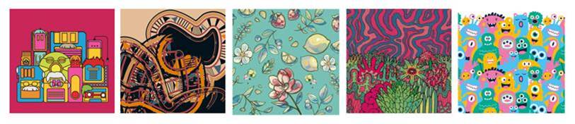 ผู้เข้ารอบ “การออกแบบโดยไม่จำกัดจำนวนสี” (เรียงจากซ้ายไปขวา)