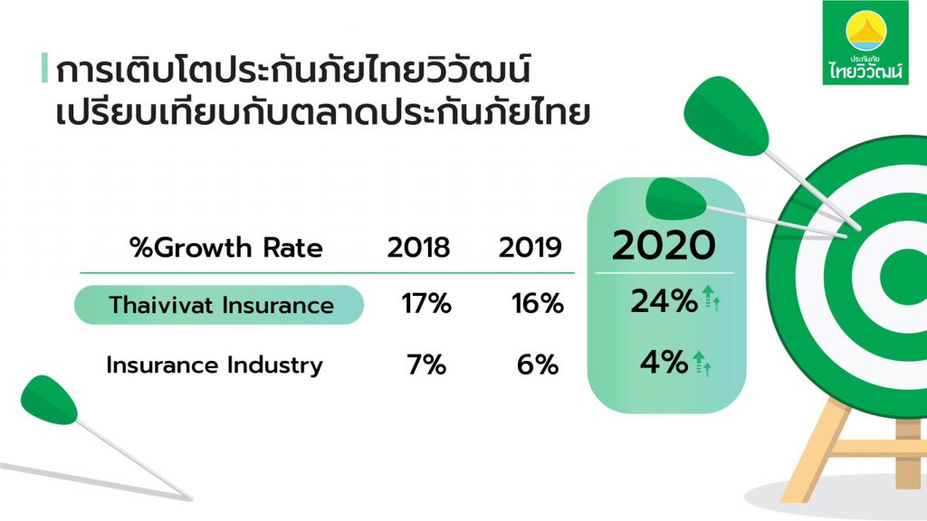 “ประกันภัยไทยวิวัฒน์ มุ่งมั่นพัฒนานวัตกรรมที่ไม่เคยมีมาก่อนให้เกิดขึ้นจริง และสามารถตอบโจทย์ความต้องการของผู้บริโภคอย่างลึกซึ้ง ซึ่งความพึงพอใจของลูกค้าทั้งราคาเบี้ยที่ลดลงและการบริการที่ตอบโจทย์ ทำให้อัตราการต่ออายุของประกันรถเปิดปิดสูงสุดในตลาดถึงเกือบ 90% และมีการบอกต่อเป็นจำนวนมาก ทำให้ยอดขายเติบโตอย่างก้าวกระโดดและผลักดันให้ค่าเบี้ยรับรวมในปี 2563 ที่ผ่านมาของไทยวิวัฒน์เติบโตกว่าตลาดถึง 6 เท่าตัว” เทพพันธ์ กล่าว
