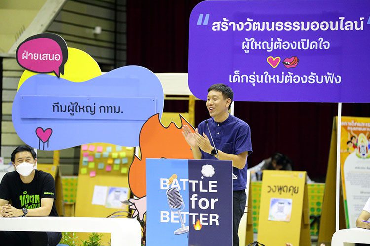 การสร้างจิตสำนึกในใจ หรือการบังคับใช้กฏกติกา อะไรจะดีกว่ากัน เป็นคำถามที่ ถูกใช้ในการแข่งขัน ในศึกโต้วาที Battle for Better #ให้ไซเบอร์บูลลี่จบที่รุ่นเรา ด้วยญัตติที่ว่า ‘การสร้างจิตสำนึกในใจ ทำให้ไซเบอร์บูลลี่จบได้มากกว่า บังคับใช้กฏกติกา’ ซึ่งกำลังตั้งคำถามสำคัญกับเด็กและสังคมว่า ภายใต้ประเด็นไซเบอร์บูลลี่ที่เด็กเป็นกลุ่มผู้มีส่วนได้ส่วนเสียในวงจรแห่งการบูลลี่นั้น พวกเขามีมุมมองและความคิดเห็นอย่างไร ตามแนวทางด้านสิทธิมนุษยชน เด็กทุกคนต่างมีสิทธิมนุษยชนเช่นเดียวกับผู้ใหญ่ รวมทั้งสิทธิในการพูดและแสดงความเห็น รวมทั้งสิทธิด้านความเท่าเทียม สุขภาพ การศึกษา สิ่งแวดล้อมที่ดี สถานที่ปลอดภัยเพื่อการดำรงชีพ และการคุ้มครองให้ปลอดพ้นจากอันตรายทั้งปวง รวมถึงการถูกบูลลี่ทางออนไลน์ในโลกยุคใหม่
