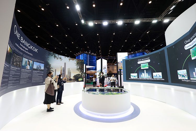 บูธโครงการ วัน แบงค็อกยังได้แสดง 3 วิสัยทัศน์เพื่อการสรรสร้างเมืองแห่งอนาคต ประกอบด้วย 1. เข้าใจถึงความต้องการของผู้คน (People Centric) พัฒนาโครงการโดยใส่ใจความต้องการของผู้คนเป็นหลัก 2. ยกระดับความยั่งยืน (Green Sustainability) เป็นโครงการแรกในไทยที่สร้างขึ้นตามมาตรฐานการพัฒนาชุมชนแวดล้อมอย่าง LEED for Neighborhood Development ระดับ Platinum และมาตรฐานรับรองอาคาร WELL เพื่อสุขภาพและความเป็นอยู่ที่ดีของผู้อยู่อาละผู้ใช้อาคาร 3. ใช้ชีวิตอย่างสมาร์ท (Smart City Living) มอบประสบการณ์การใช้ชีวิตในสมาร์ทซิตี้ที่สมบูรณ์แบบ อาทิ ระบบไร้สัมผัส, วัน แบงค็อก โมบาย แอพพลิเคชั่น, ระบบสาธารณูปโภคล้ำสมัย, การบริหารจัดการจราจร รวมถึงการรักษาความปลอดภัย ทั้งหมดถูกออกแบบเพื่อส่งเสริมการใช้ชีวิตของผู้คนและรองรับการดำเนินงานโครงการอย่างยั่งยืนในระยะยาว