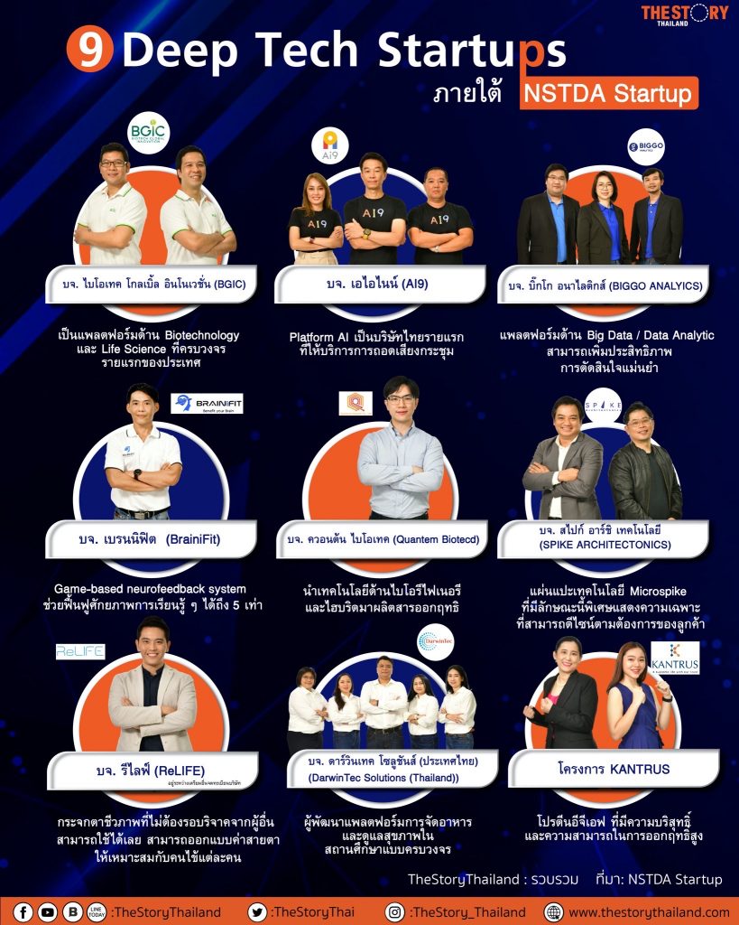 สำหรับ ผลงานของ 9 สตาร์ตอัพดีพเทคสัญชาติไทย ภายใต้โครงการนาสท์ด้า สตาร์ตอัพ ข้างต้นนี้ มีเป้าหมายเพื่อแสดงให้เห็นว่า งานวิจัยแต่ละชิ้นเป็นประโยชน์มากกว่าแค่การเติมชั้นวางหนังสือในห้องสมุดให้เต็ม และเชื่อว่า การต่อยอดงานวิจัยดังกล่าวจะเป็นรูปแบบธุรกิจใหม่ของไทยในโลกยุคเศรษฐกิจดิจิทัล พร้อมยกระดับเศรษฐกิจด้วยงานวิจัยและนวัตกรรม ของสำนักงานพัฒนาวิทยาศาสตร์และเทคโนโลยีแห่งชาติ (สวทช.) : กระทรวงการอุดมศึกษา วิทยาศาสตร์ วิจัยและนวัตกรรม