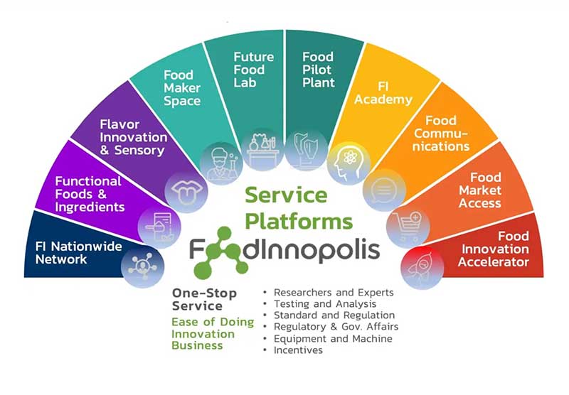 ตลอดระยะเวลาการดำเนินงานของเมืองนวัตกรรมอาหาร (Food Innopolis) ซึ่งจัดตั้งขึ้นตามมติคณะรัฐมนตรี ตั้งแต่ปี 2559 จนถึงปัจจุบัน ถือเป็นอีกหนึ่งจิ๊กซอว์ชิ้นสำคัญต่อการส่งเสริมระบบนิเวศด้านนวัตกรรม (Innovation Ecosystem) เพื่อการพัฒนาอุตสาหกรรมอาหารของประเทศ รวมถึงผลักดันไทยให้อยู่ในเรดาห์ที่ทั่วโลกเล็งเห็น ในฐานะศูนย์กลางพัฒนาเทคโนโลยีและนวัตกรรมด้านอาหาร (Food Innovation Hub) อีกแห่งหนึ่งของอาเซียน