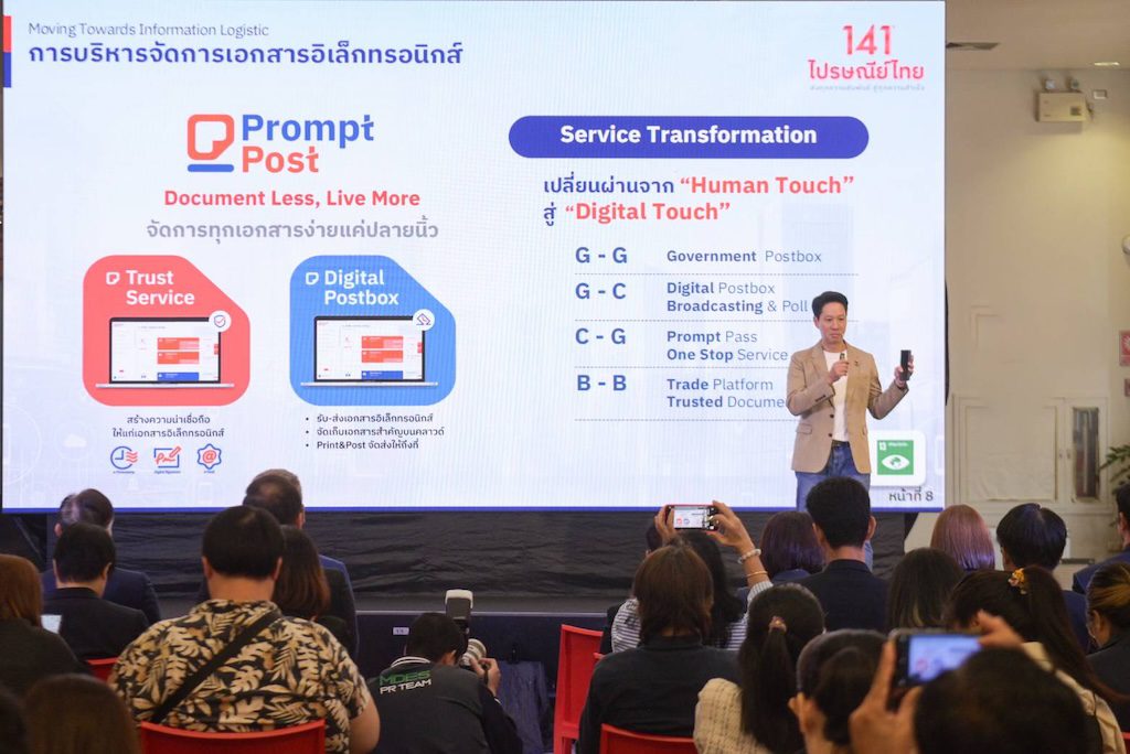 - Promptpost: ระบบจัดการเอกสารอิเล็กทรอนิกส์ที่สามารถส่งผ่านเครือข่ายไปรษณีย์ไทยได้อย่างรวดเร็วและปลอดภัย โดยที่ผู้ใช้บริการสามารถสร้างและส่งเอกสารที่มีลายเซ็นอิเล็กทรอนิกส์ (E-signature) ได้โดยตรง ซึ่งระบบนี้จะช่วยลดการใช้เอกสารกระดาษ และส่งเสริมการทำงานที่เป็นมิตรต่อสิ่งแวดล้อม พร้อมทั้งเพิ่มความสะดวกในการจัดการและจัดเก็บข้อมูลอย่างเป็นระบบ
