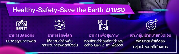 ตอนนี้ทั่วโลกกำลังให้ความสำคัญกับความยั่งยืน (ESG) หรือการดำเนินธุรกิจที่ใส่ใจสิ่งแวดล้อม รับผิดชอบต่อสังคม และมีความโปร่งใสตรวจสอบได้ โดยธุรกิจอาหารและเครื่องดื่ม มักถูกกล่าวหามาตลอดว่าเป็นตัวการหลักทำให้เกิดก๊าซเรือนกระจก ทำลายสิ่งแวดล้อมและทำให้เกิดภาวะโลกร้อน ดังนั้นกระบวนการผลิตสินค้าจะต้องมีความโปร่งใส สามารถตรวจสอบย้อนกลับได้ (Food Journey) เช่น ผลิตภัณฑ์อาหารชิ้นนั้นผลิตมาจากฟาร์มไหน ผลิตเมื่อไร เกษตรกรผู้เพาะปลูกเป็นใคร และขนส่งมาอย่างไร เป็นต้น ซึ่งเหล่านี้เป็นสิ่งที่ผู้ประกอบการต้องปรับตัวเพื่อสร้างความน่าเชื่อถือและสร้างความมั่นใจให้กับผู้บริโภค ยิ่งไปกว่านั้นยังจำเป็นต้องเตรียมความพร้อมที่อาจจะถูก Disrupt จากสินค้านวัตกรรมใหม่ ๆ ในตลาด เช่น เนื้อสัตว์เทียม (Lab-grown meat) หรือสินค้าที่เป็นโปรตีนจากพืช (Plant-based) ที่ปัจจุบันเริ่มเข้ามาตีตลาดมากขึ้นแล้ว
