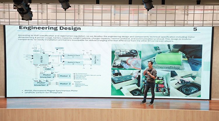 ผลทีมโปรเจค อีวี (Project EV) คว้าแชมป์ไปครอง กับแผนธุรกิจการให้บริการดัดแปลงรถขนส่งสันดาปภายในเป็นรถยนต์ไฟฟ้าสำหรับธุรกิจ พร้อมบริการติดตั้งสถานีอัดประจุไฟฟ้าที่ศูนย์กระจายสินค้า เผยเทรนด์สตาร์ตอัพไทยเสนอไอเดียตอบโจทย์ภาคธุรกิจด้านความยั่งยืนมากขึ้น พร้อมเดินหน้าจัดโครงการส่งเสริมสตาร์ตอัพไทยต่อเนื่อง